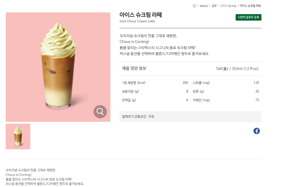 슈크림라떼는 전에도 시즌 음료로 출시 되었던 것 같은데, 맛이 좋다는 후기가 많더라고요.