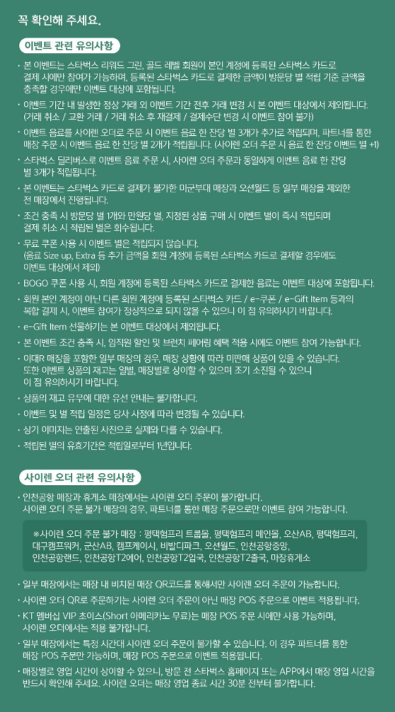 1. 사이렌 오더로 주문해야 별 3개 추가 가능 (일반 주문은 별 2개)