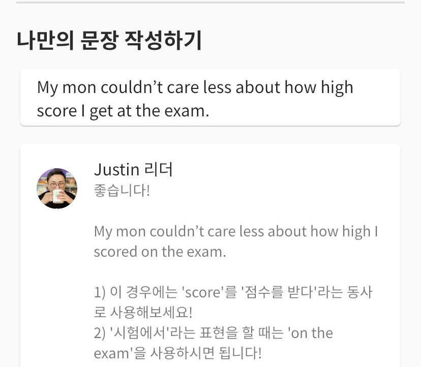 만약, 그냥 스스로 문장 만들기를 하는 거였다면 맞는지 틀리는지/ 어떤 부분이 잘못된건지/ 그래서 어떻게 고치는 게 맞는지 알 수가 없다. 열심히 하긴 하는데, 이게 맞나? 싶을 때가 있다.