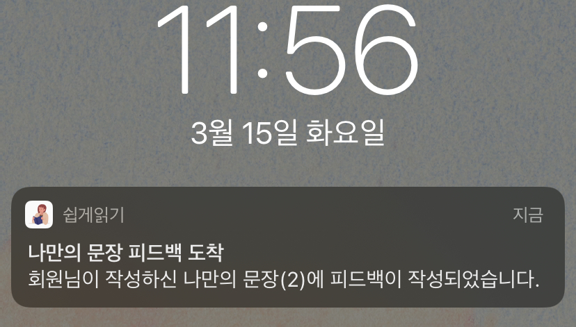 어쩌면 이 부분이 [쉽게읽기앱]의 백미이고, 화룡점정인 것 같다. 왜냐하면 '리더의 피드백'을 받을 수 있기 때문이다.