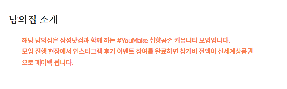 남의집 프로그램은 매주 새로운 남의집이 열리고, 삼성닷컴/일룸/오뚜기 등 다양한 콜라보 프로그램도 있다.