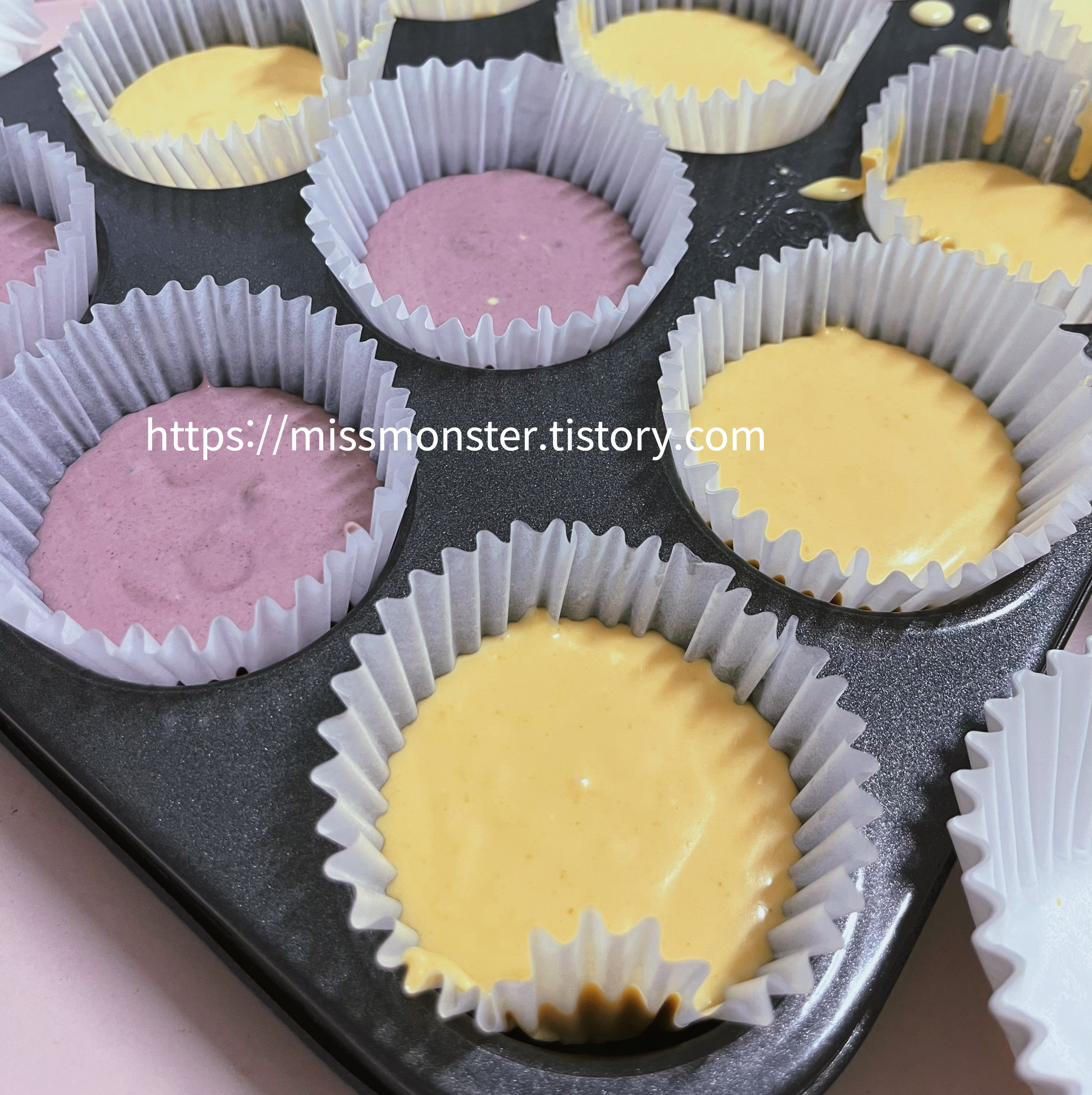 그리고 반죽 양이 제법 남아서 남은 것은 머핀틀에 구워주셨다.