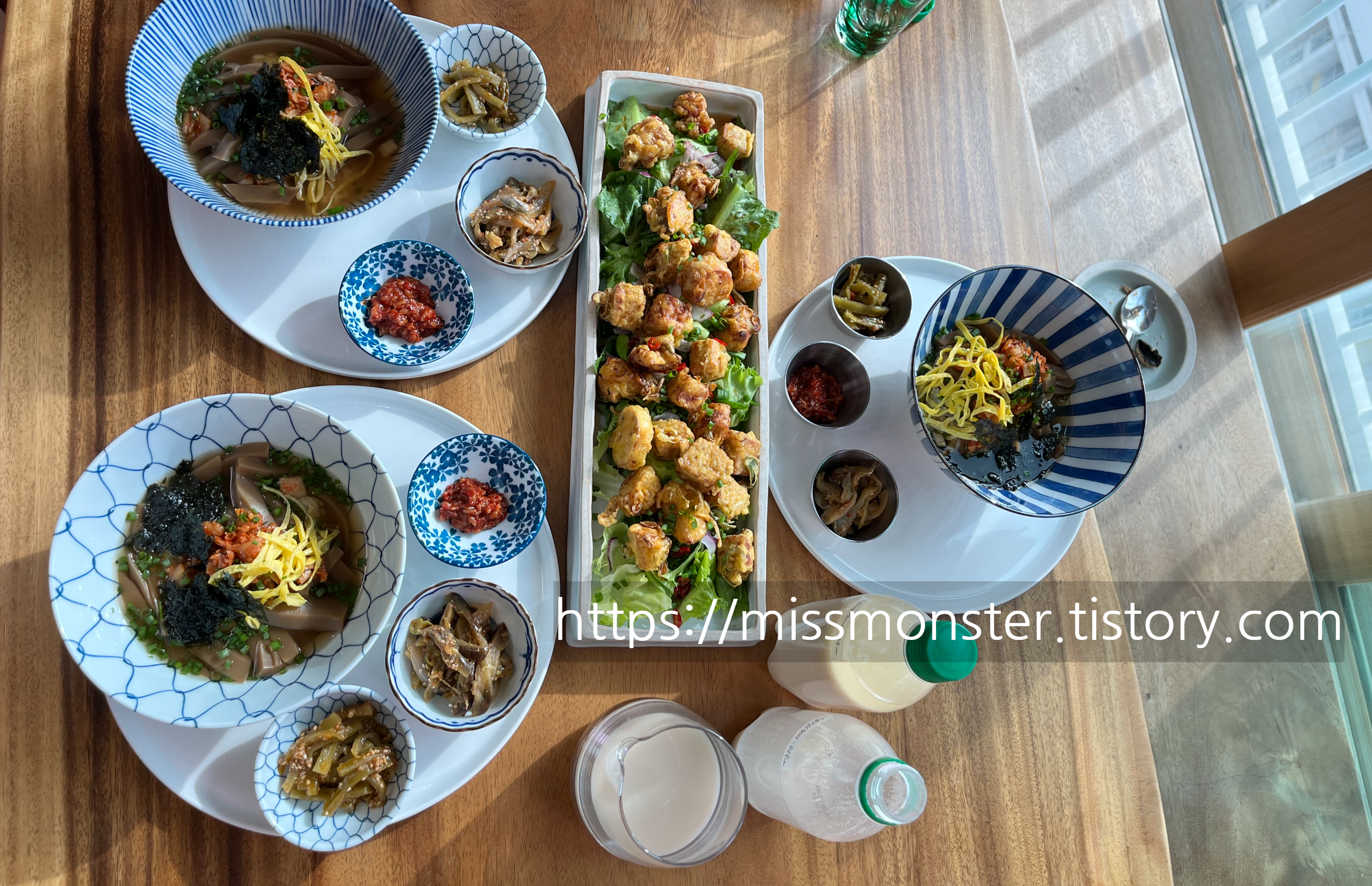상 위에는 막걸리와 곁들일 음식이 준비되어 있었는데,