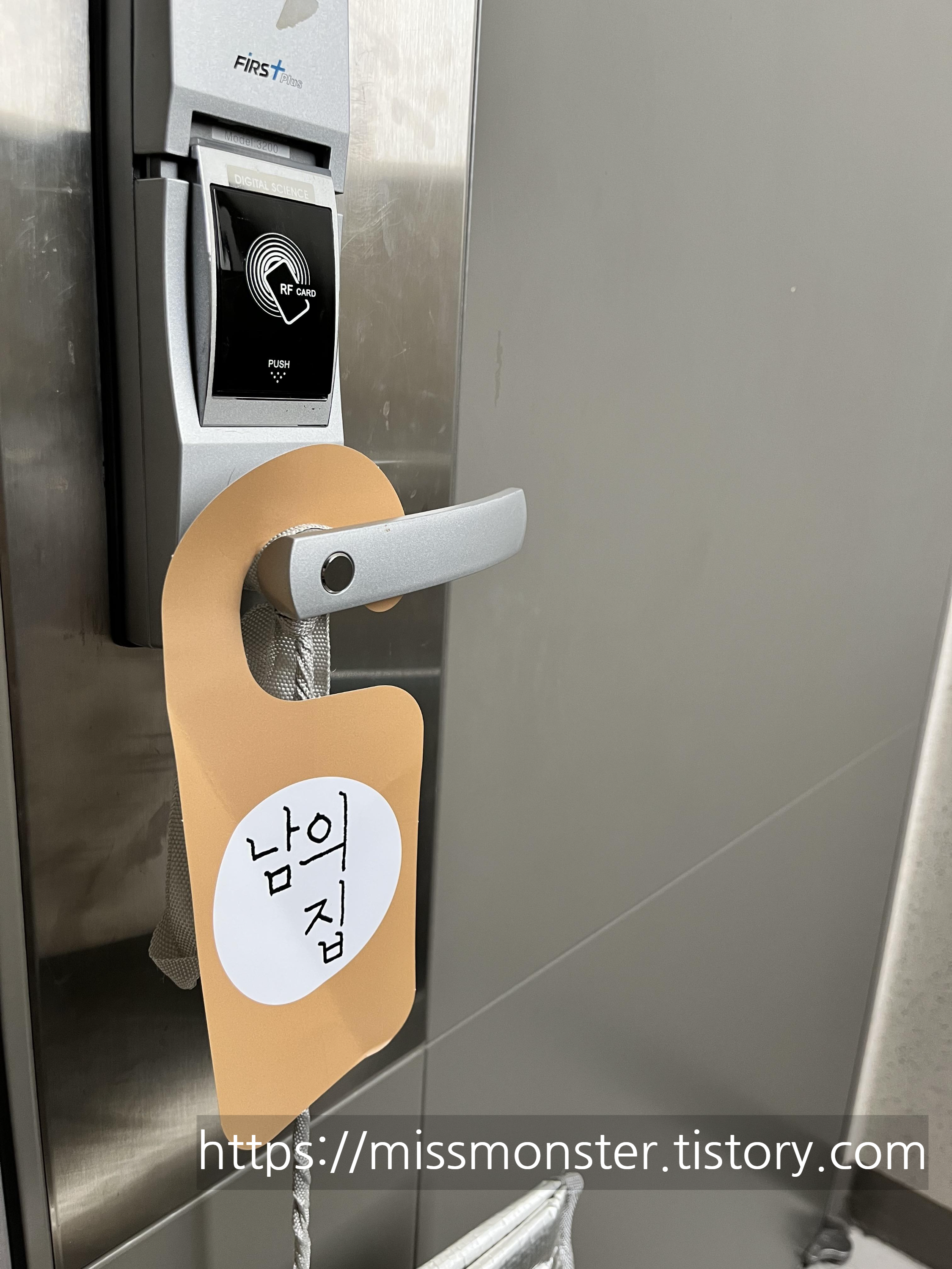 아파트 문고리에 남의 집 카드가 걸려있다.