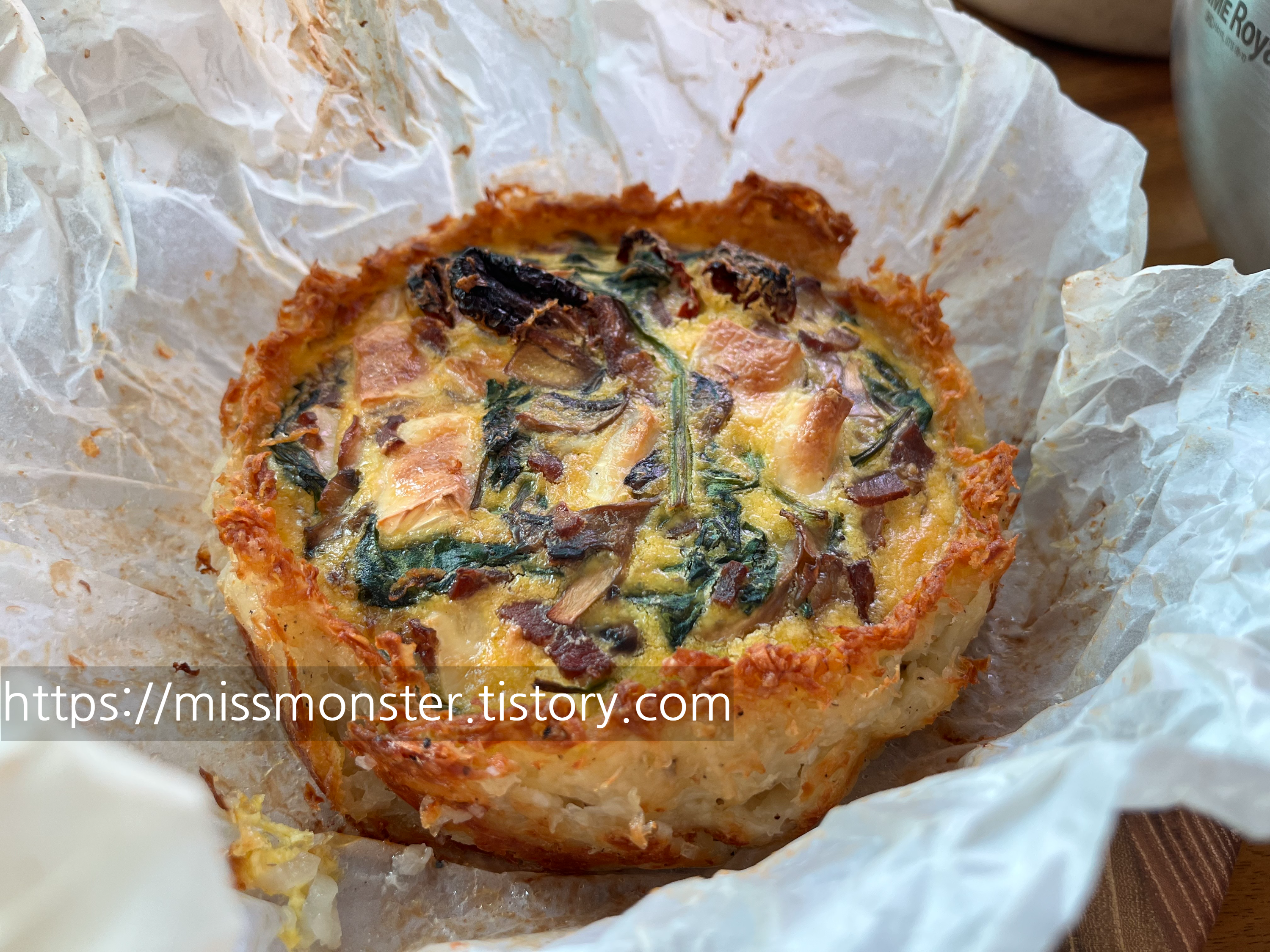 오븐에서 바로 꺼내오셨다. '키쉬'라는 음식인데 아래는 감자채 위에는 달걀과 시금치 등 의 야채가 들어있다.