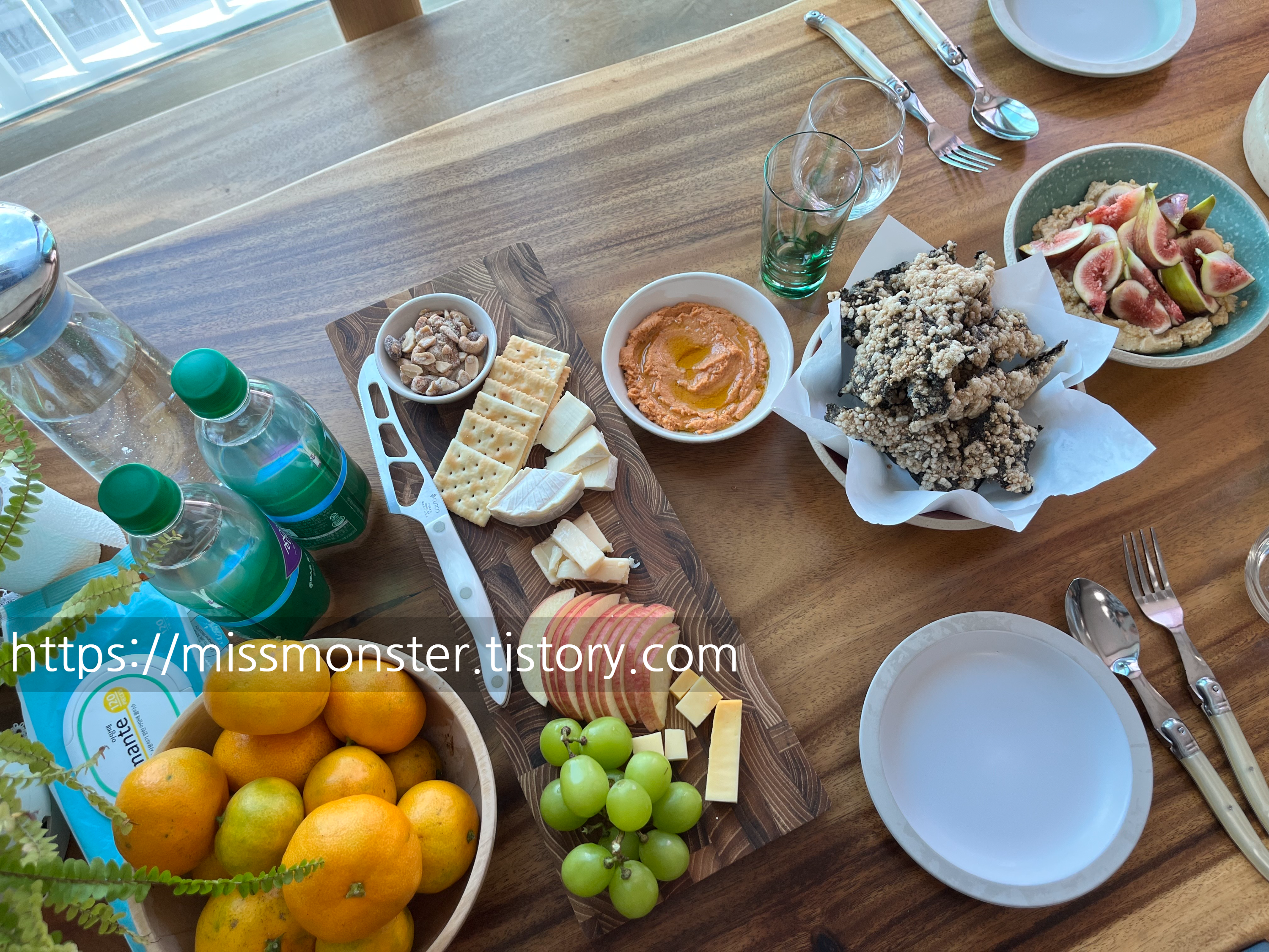 과일, 치즈, 후무스와 무화과, 김부각, 페퍼로니 디핑소스?