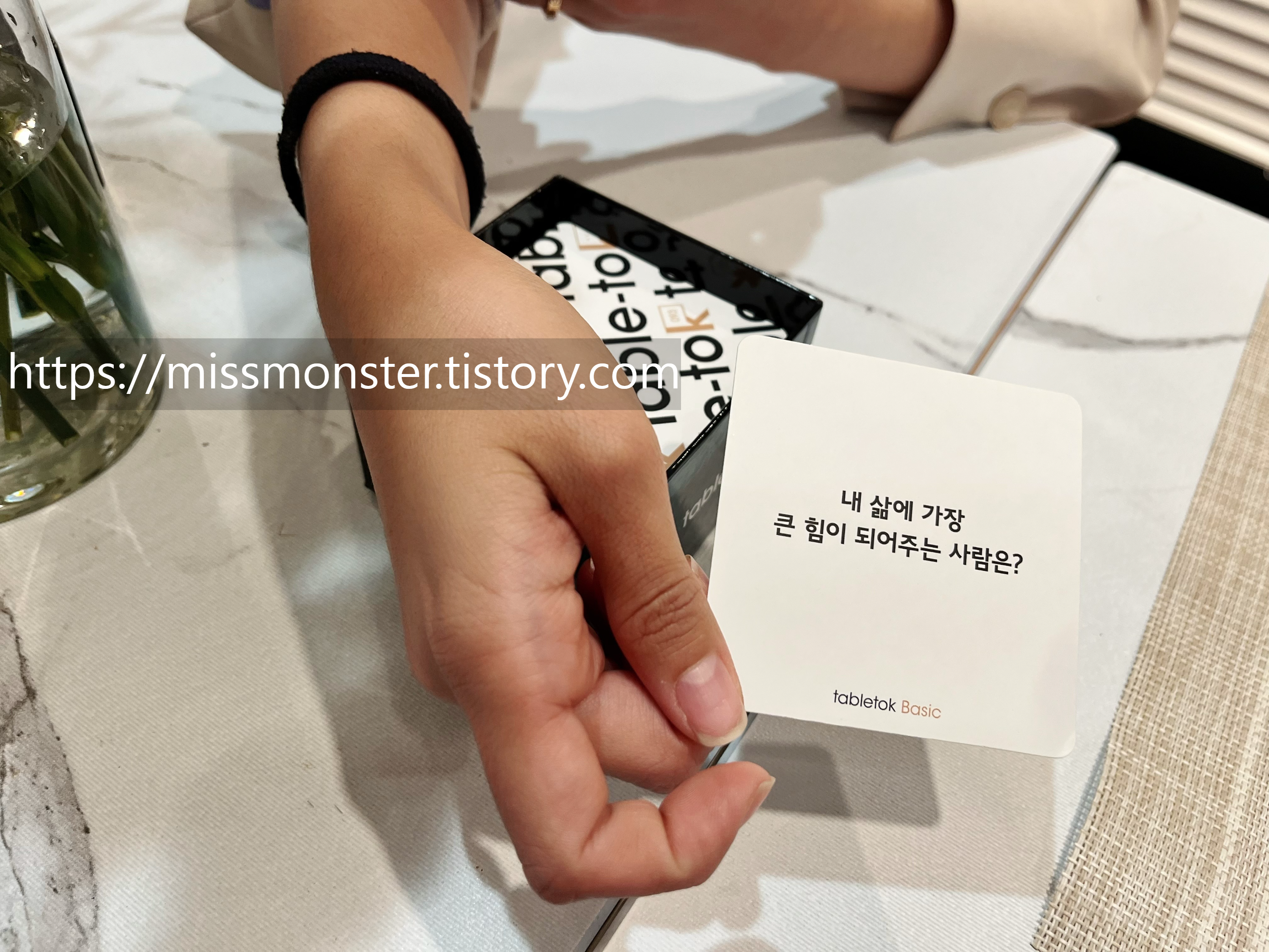 꽃을 만드는 동안, 호스트 클레어님은 테이블톡이라는 질문카드를 이용하여 대화를 이끌어나가셨다.