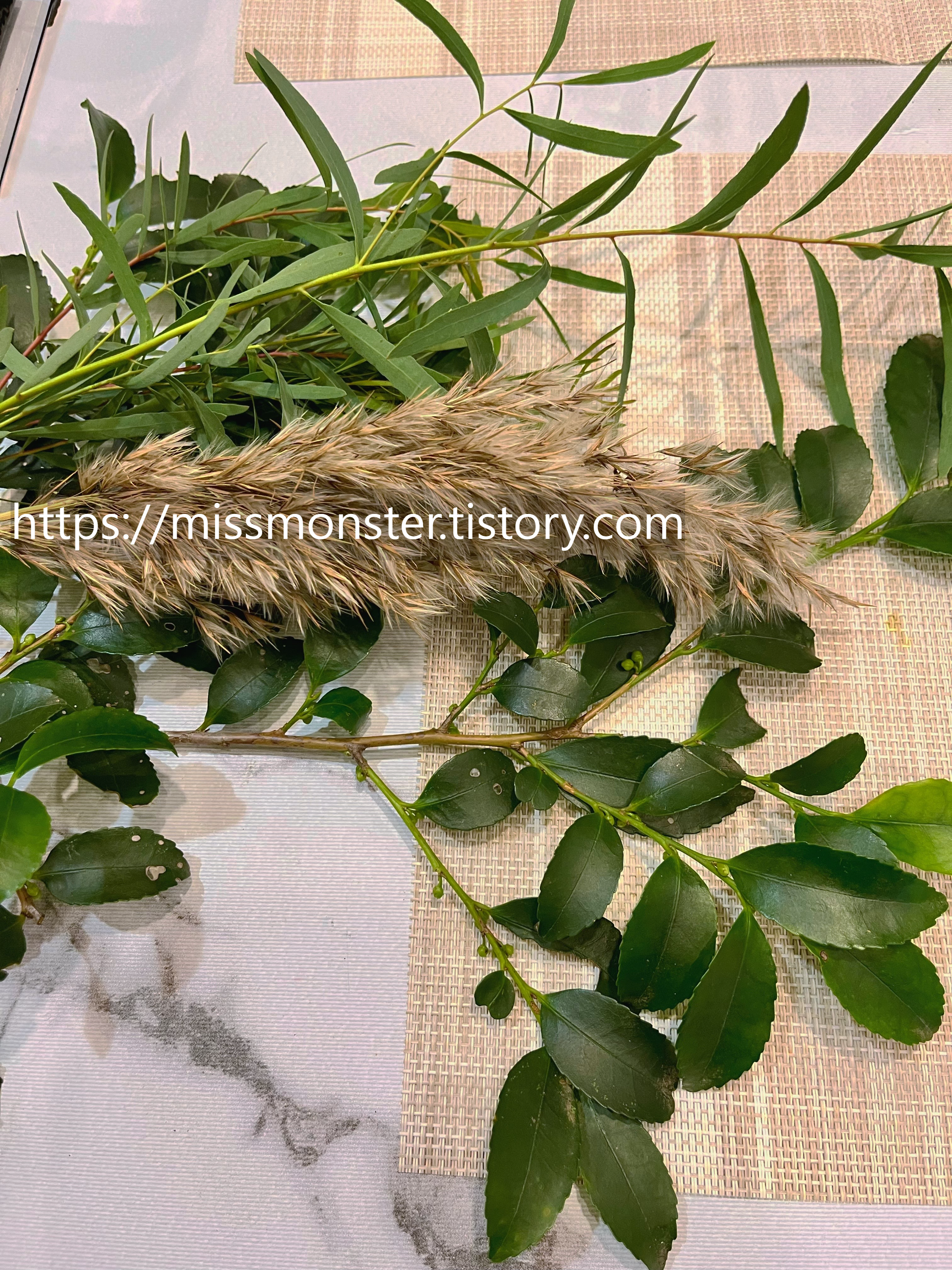 아무튼!!! 초록 식물들을 베이스로 먼저 깔고 꽃송이들을 꽂으면 된다고 하셨다.