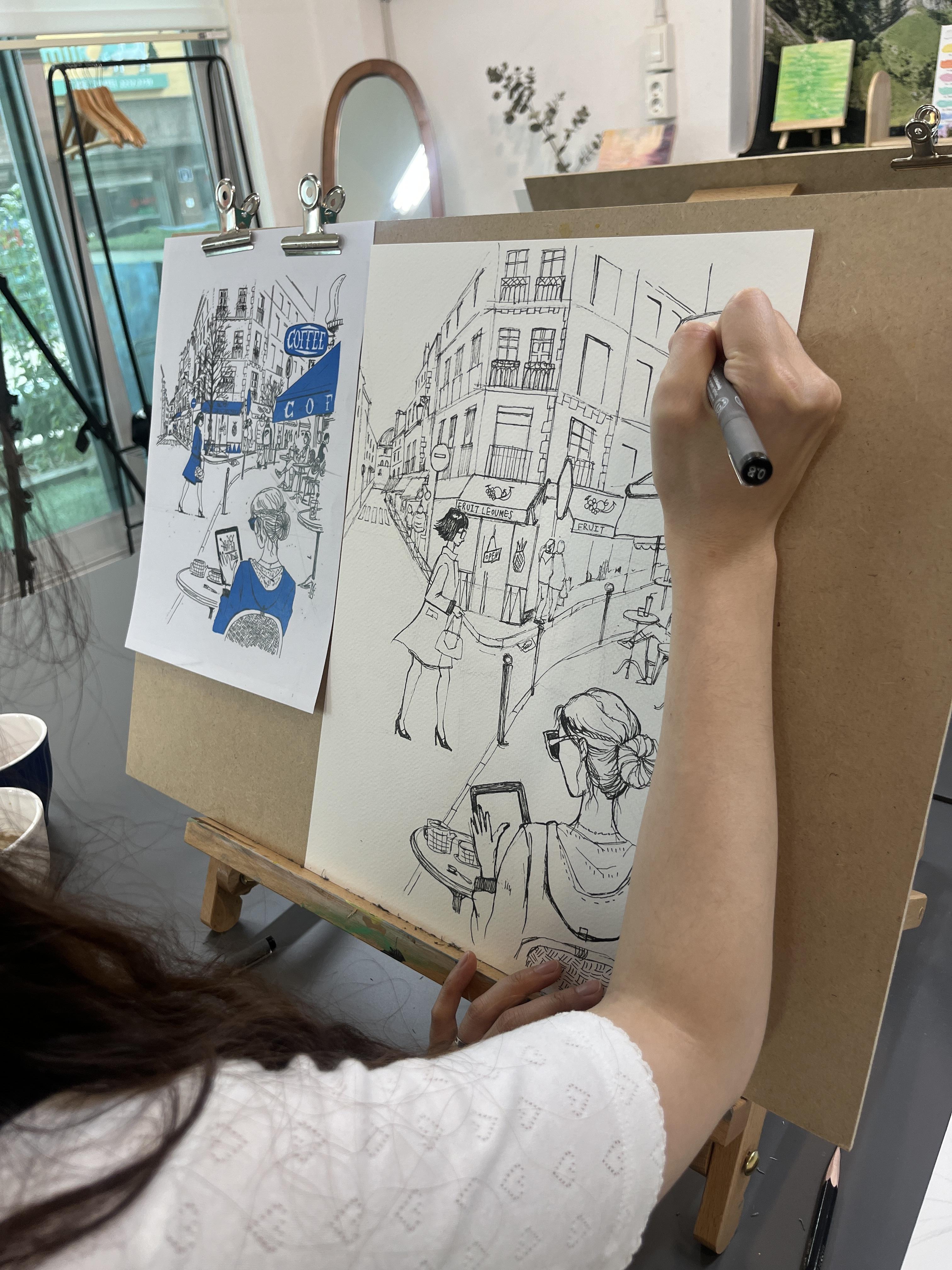 원래는 밖에 나가서 도시의 모습을 펜으로 그리는 건데