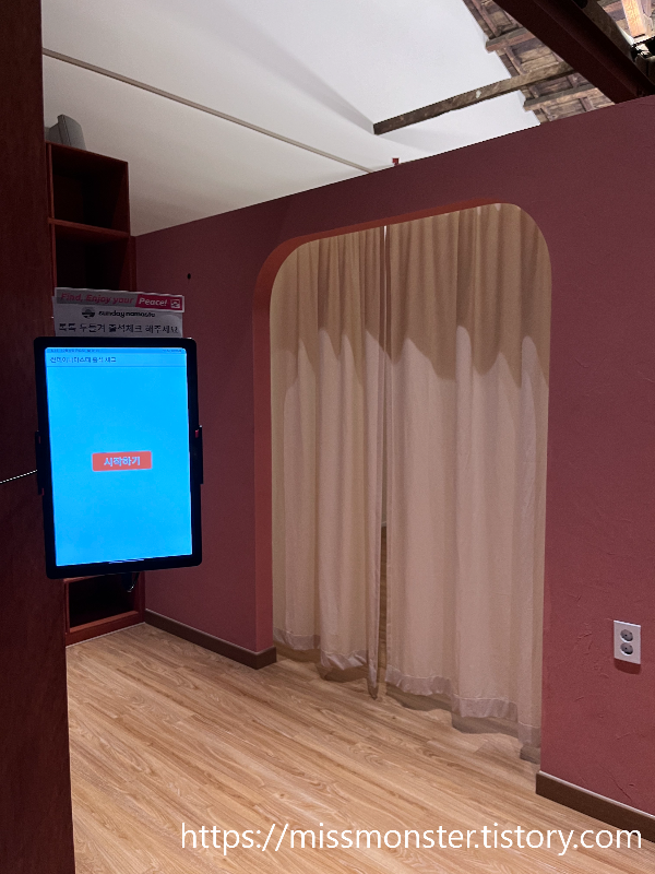 문을 열고 비치되어있는 패드에 QR코드로 출석체크를 하면 된다.