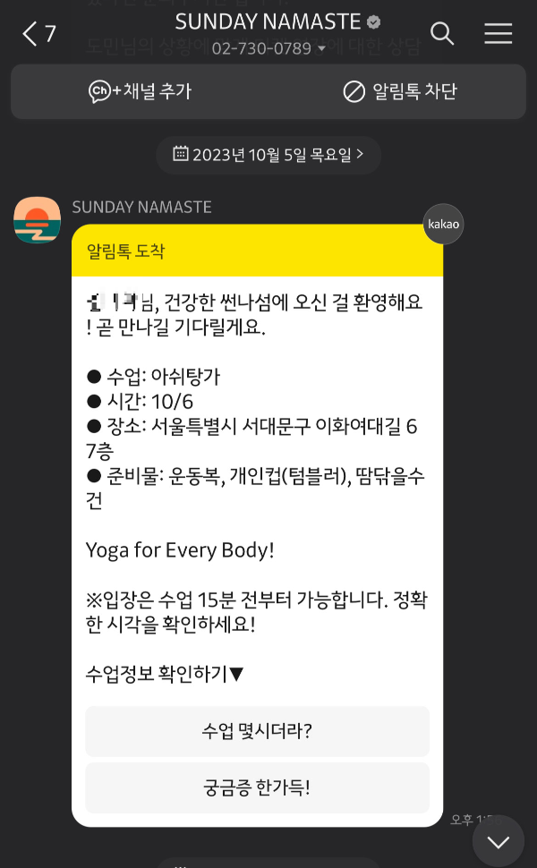 수업을 신청하면, 카카오톡 알림으로 알림톡이 온다.
