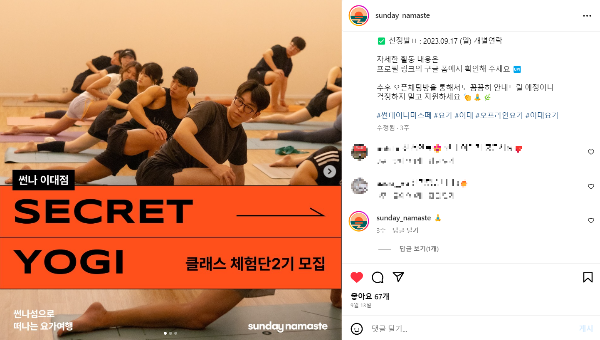 썬데이나마스떼라는 곳에서 시크릿요기, 클래스체험단을 모집하고 있었다.