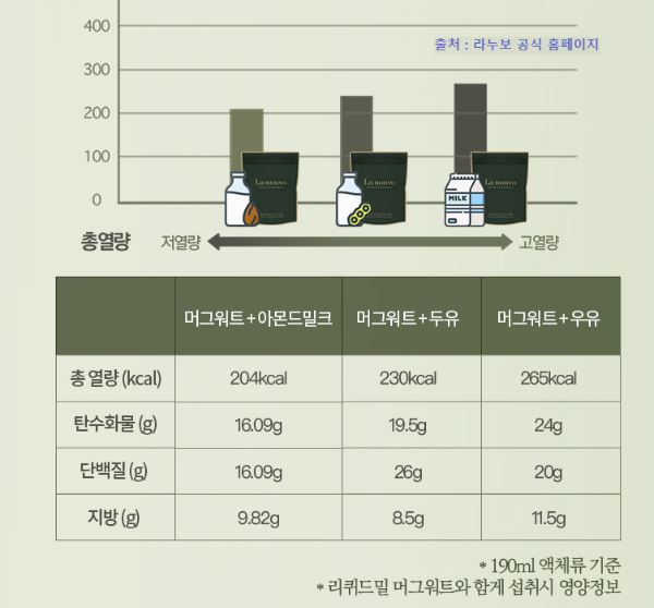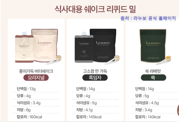 라누보의 대표는 리퀴드 밀포 바디 쉐이크지만 진저얼그레이티와 함께 먹으면 더 시너지가 있다고 한다.