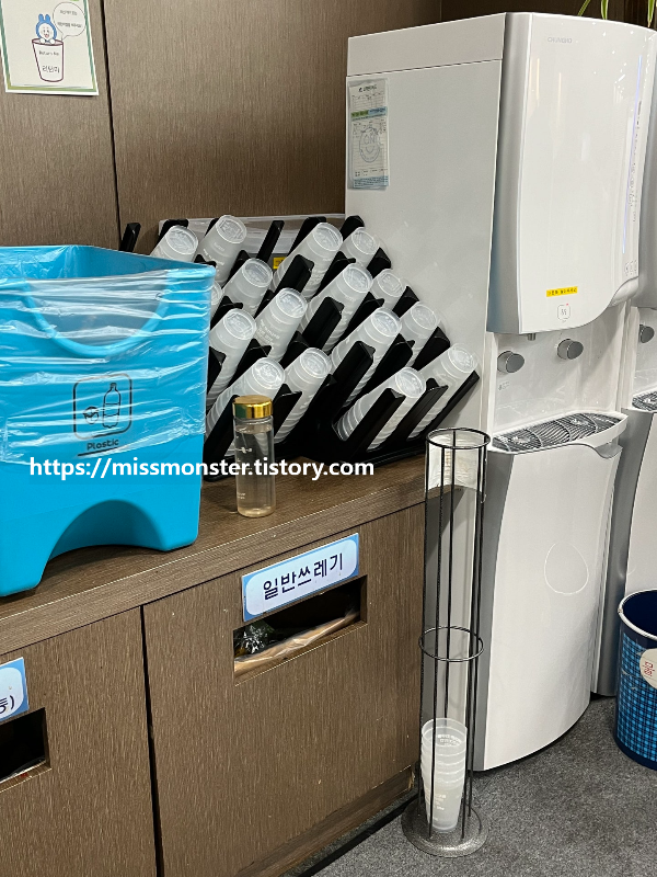 이룸센터는 장애인의 편의를 위한 장치들과 환경을 위한 리유저블 컵이 배치되어 있다.