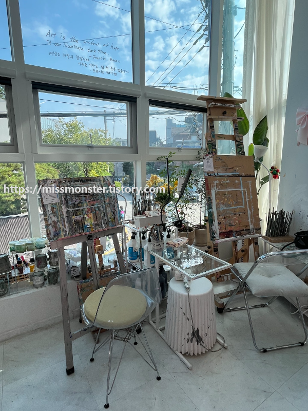 창가 쪽 캔버스자리는 그림 그리는 내내 통창으로 보이는 뷰를 감상하는 것도 좋았다.