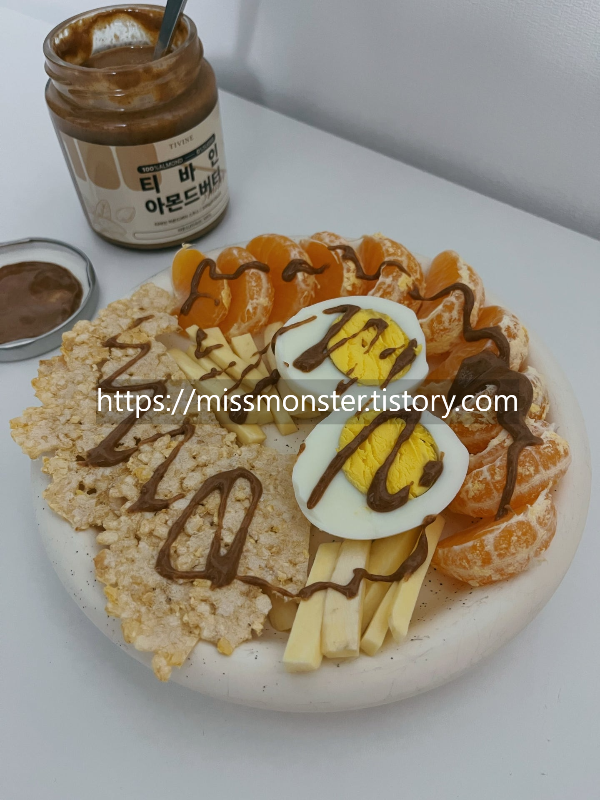 땅콩버터는 살짝 묵직? 되직? 하기도 한데 티바인 아몬드버터는 조금 더 물처럼? 가벼운 느낌이었다.