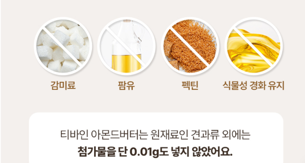 티바인 아몬드 버터는 오직 100% 미국산 아몬드를 사용했고
