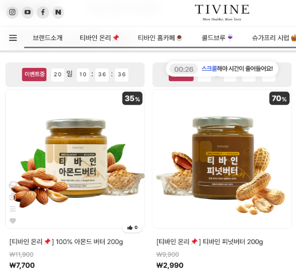 현재 홈페이지에서는 이벤트 중으로 아몬드버터는 7,700원/ 땅콩버터는 2,990원